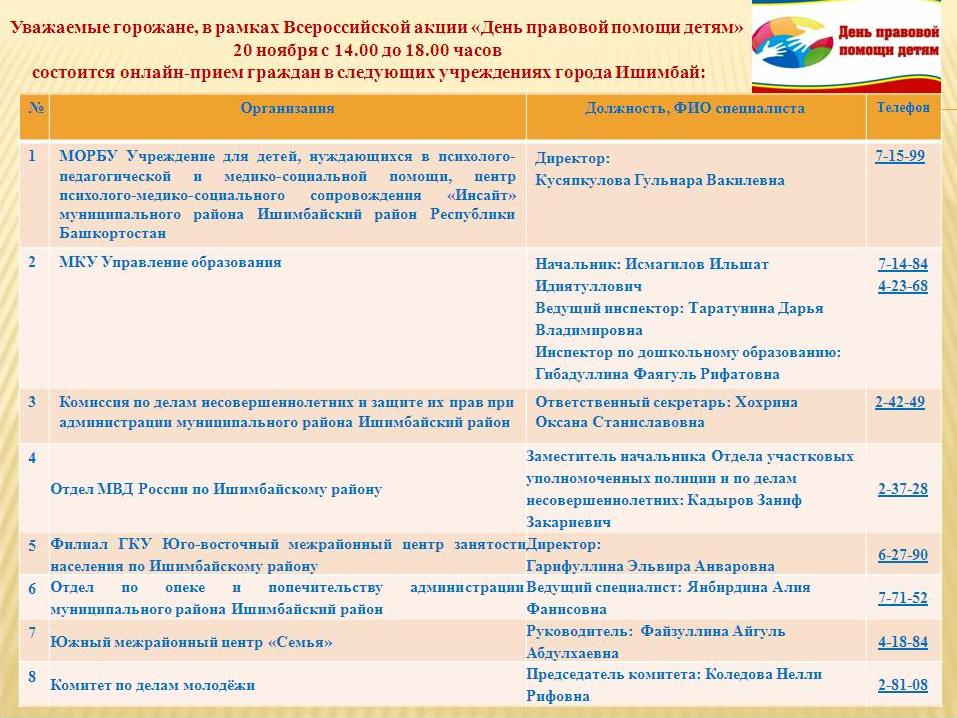 20 ноября – Всероссийский день правовой помощи детям